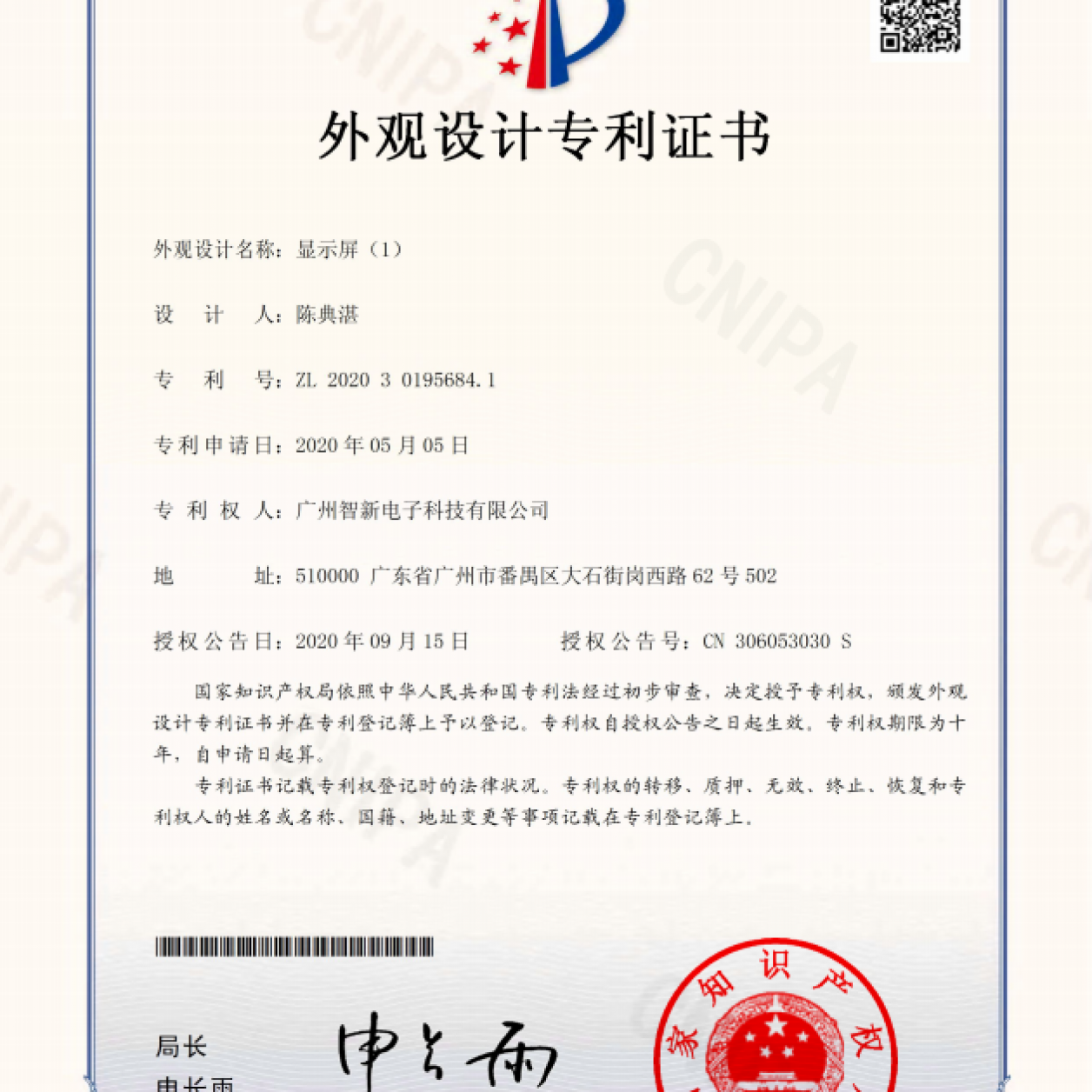 外观专利证书